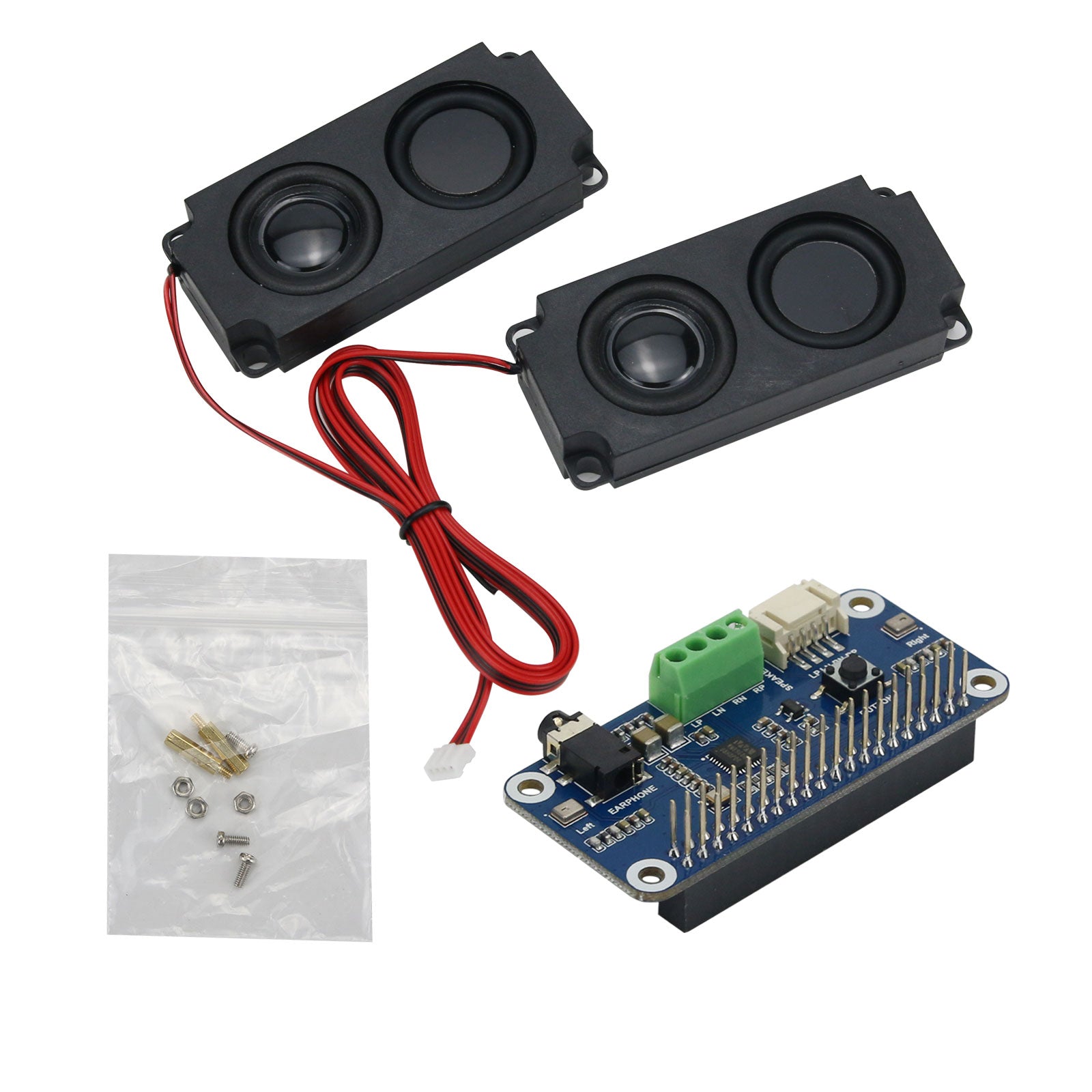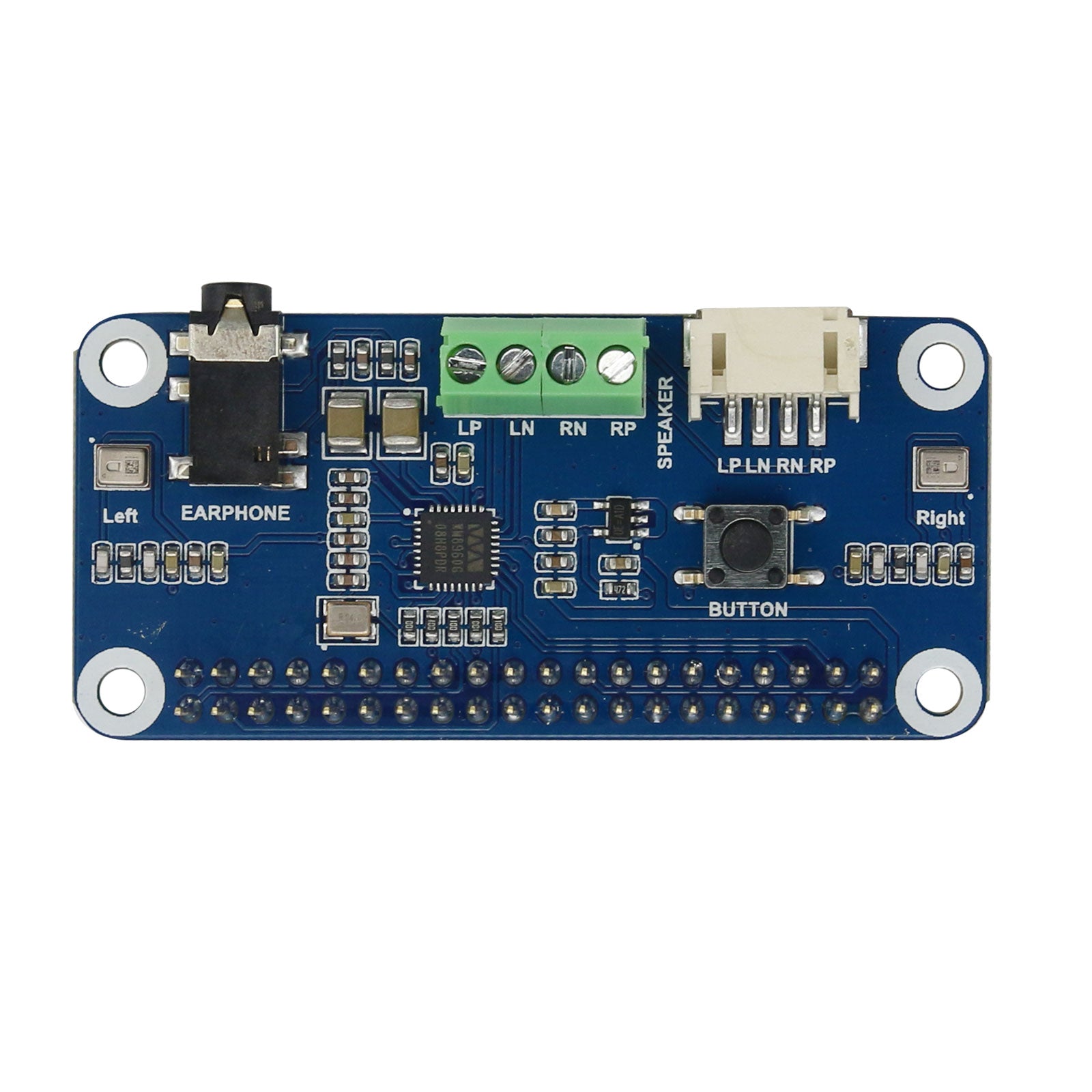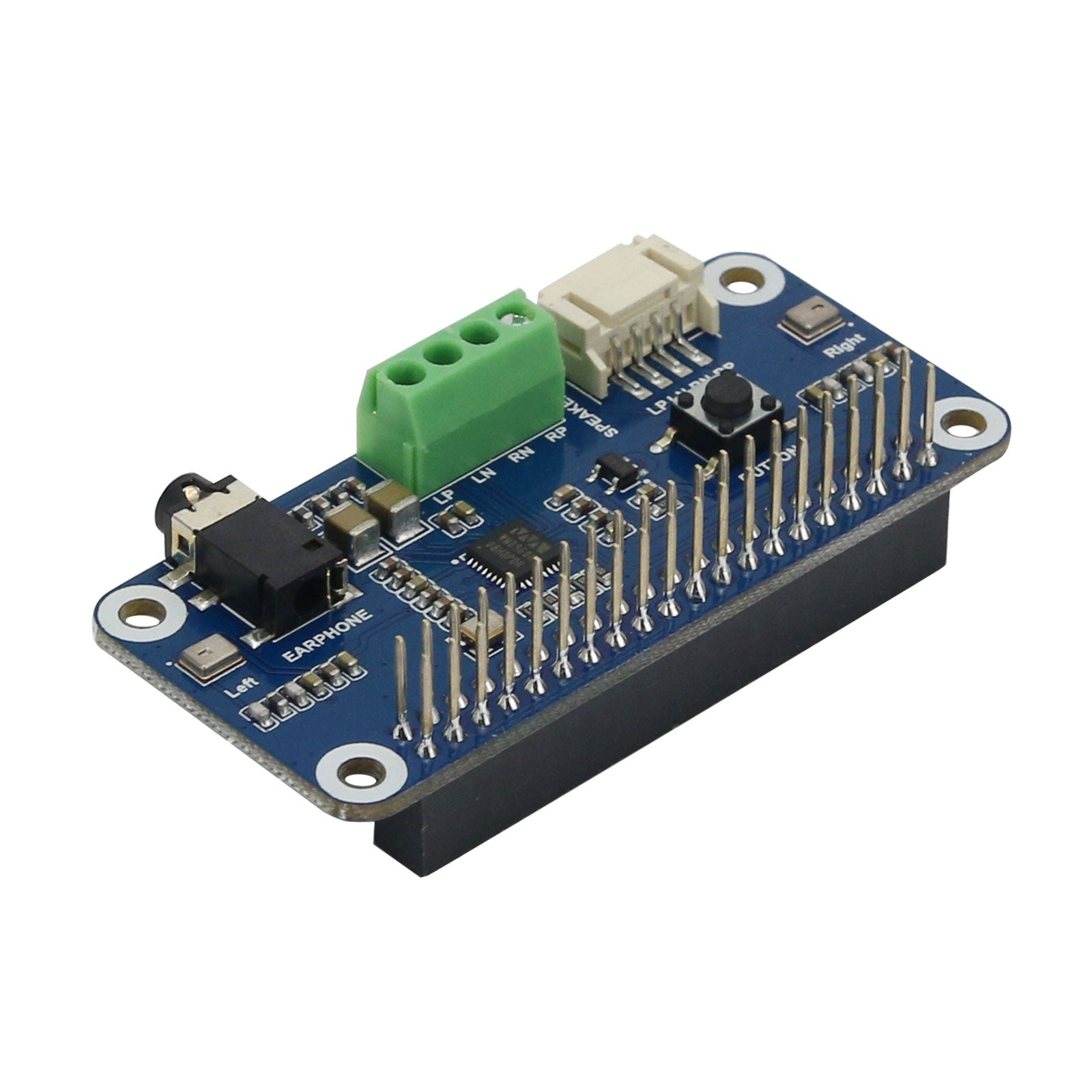 It is an audio sound card expansion board for Raspberry Pi, low power consumption, stereo codec, supports high-quality playback and recording, and can directly drive speakers to play music.