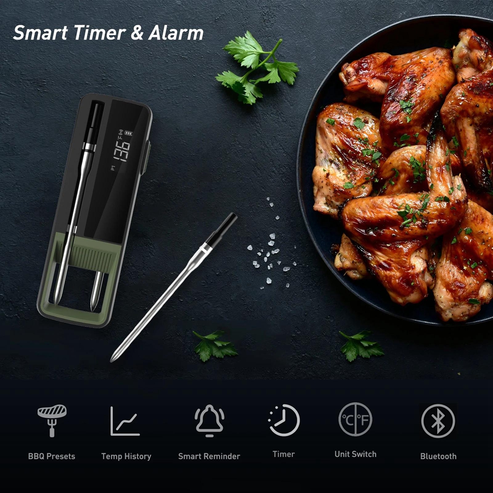 WP-03 Intelligent Bluetooth Barbecue Thermometer IP67 Waterproof APP Wireless Control with Double Probes