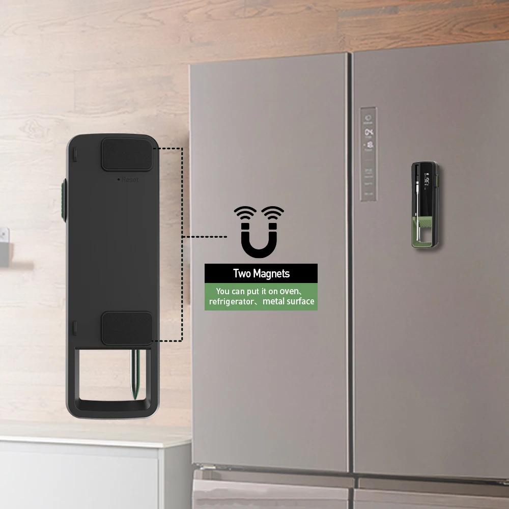 - Magnetic Charging Dock: no batteries needed with the USB port design. Enjoy a backlit screen for easy temperature viewing. Conveniently stick it to your oven or fridge for storage using the magnetic backing.