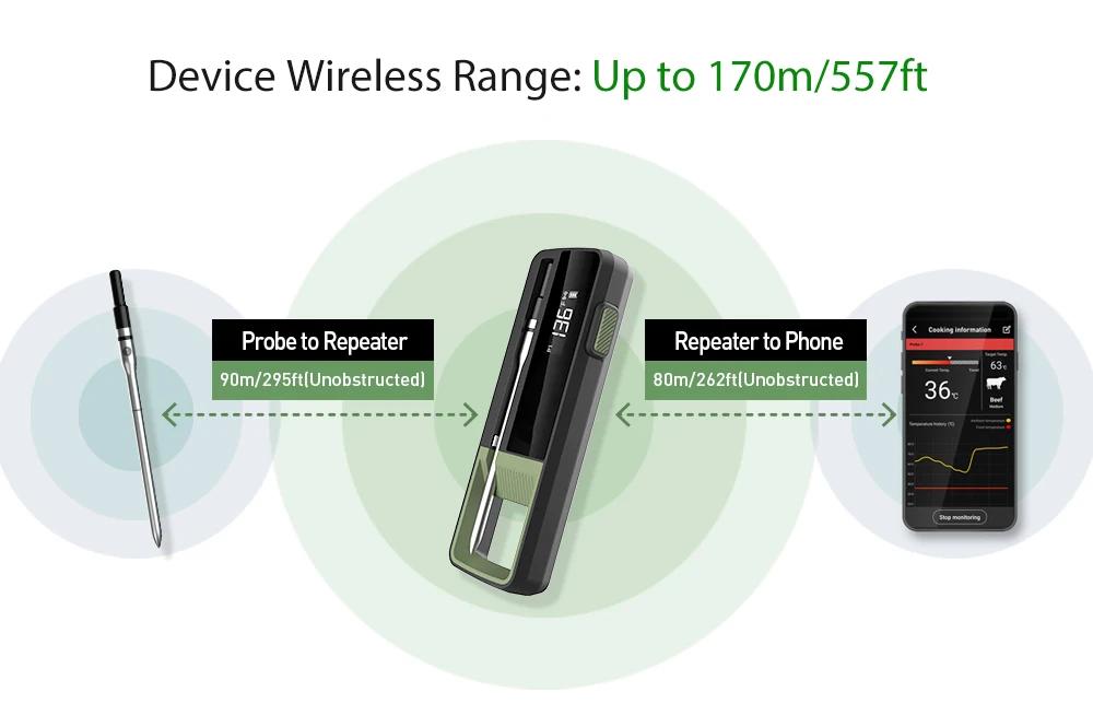 - Wireless Design for Remote Monitoring: no wires, no mess. Providing you the freedom to control your cooking from up to 557 feet away in an open space.