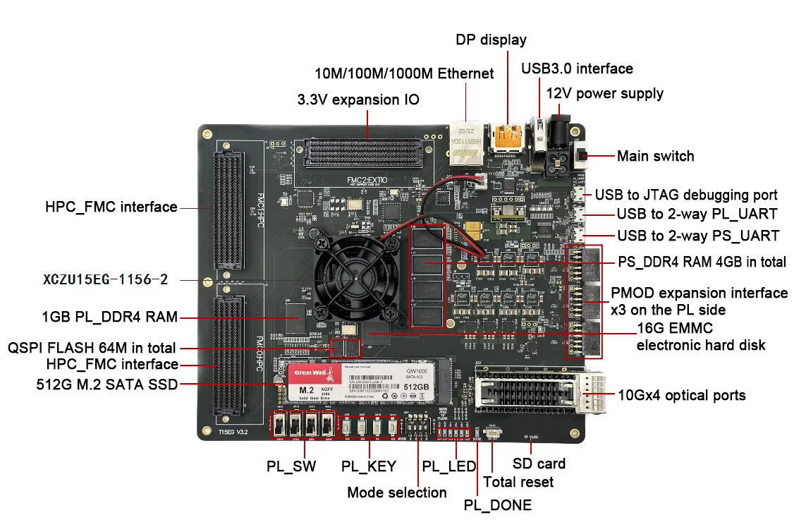 XCZU15EG MPSOC Development Board 14-Layer PCB with FMC HPC Used for Software Defined Radio Purpose