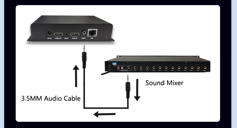 - Can connect to 3.5mm external audio or use HDMI audio. Audio coding method: AAC/AAC+/AAC++/MP3/MP2/AC3. Channel: Stereo/left channel/right channel. For ONVIF equipment: RTSP stream compatible with G711A encoding