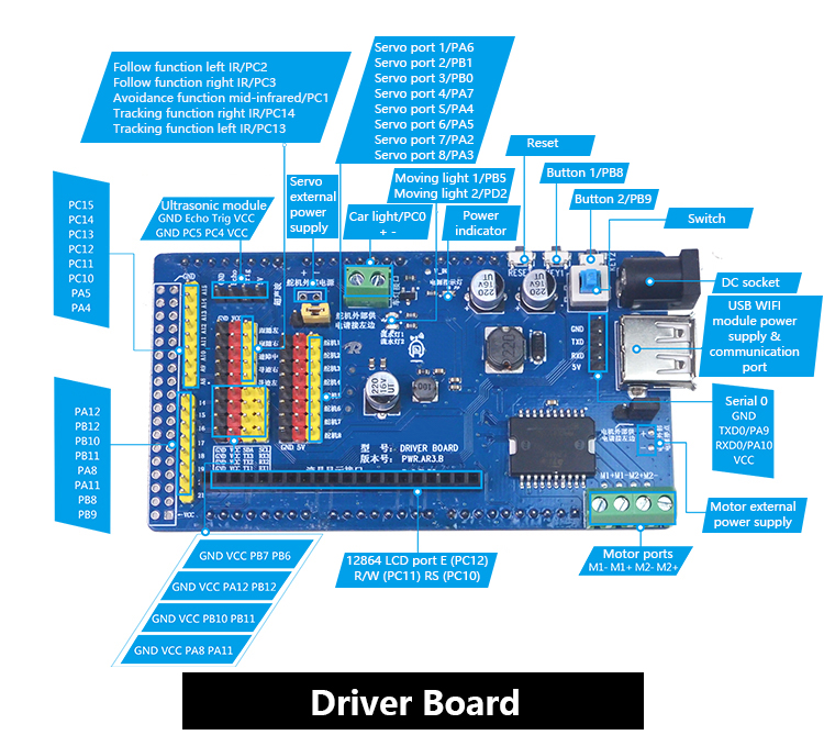 - Multi-function motherboard: careful layout, reasonable wiring, and precise layout. STM32 robot main control board + PWR robot voltage regulator and motor drive motherboard, motor and servo drive are all available. It supports common sensors and peripherals