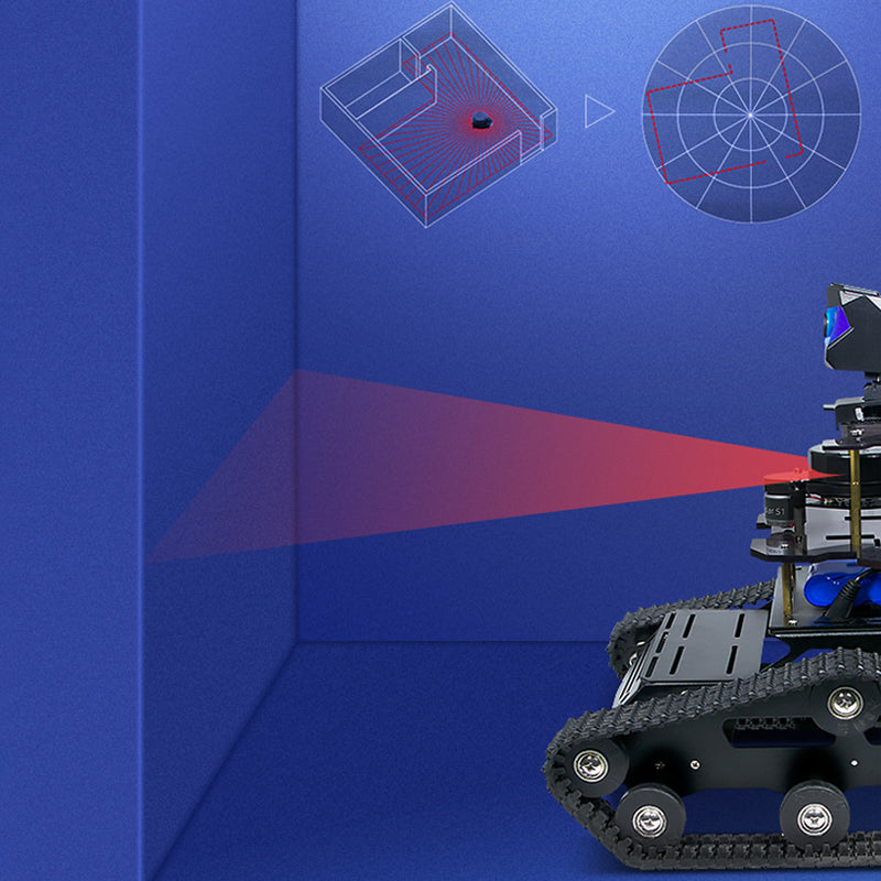 - Laser triangulation technology: Through the SLAM algorithm, it can easily scan the building to construct a map (for gmapping, hector/Harto algorithm)