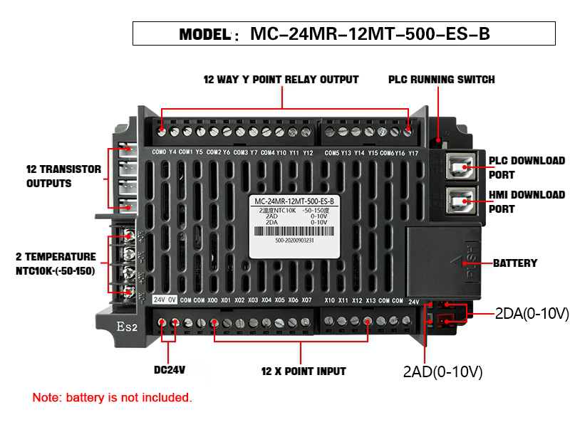 YKHMI MC-24MR-12MT-500-ES-B 5.0" All in One PLC HMI Touch Screen Display Compatible with Delta ES2