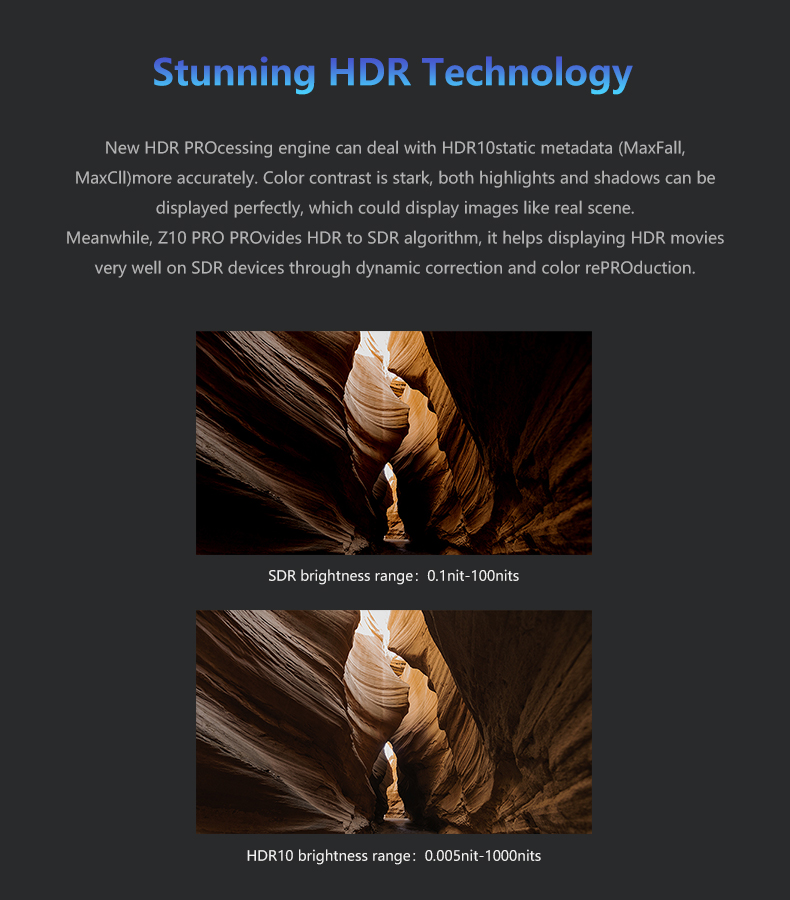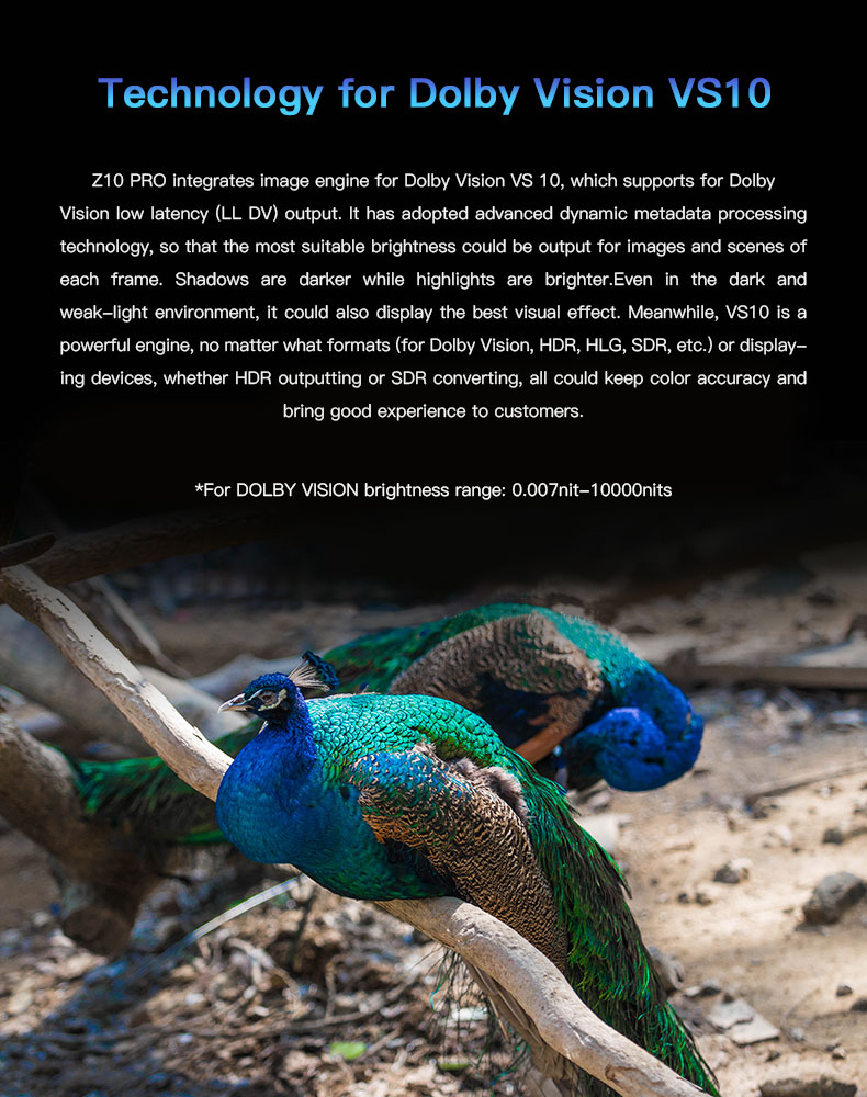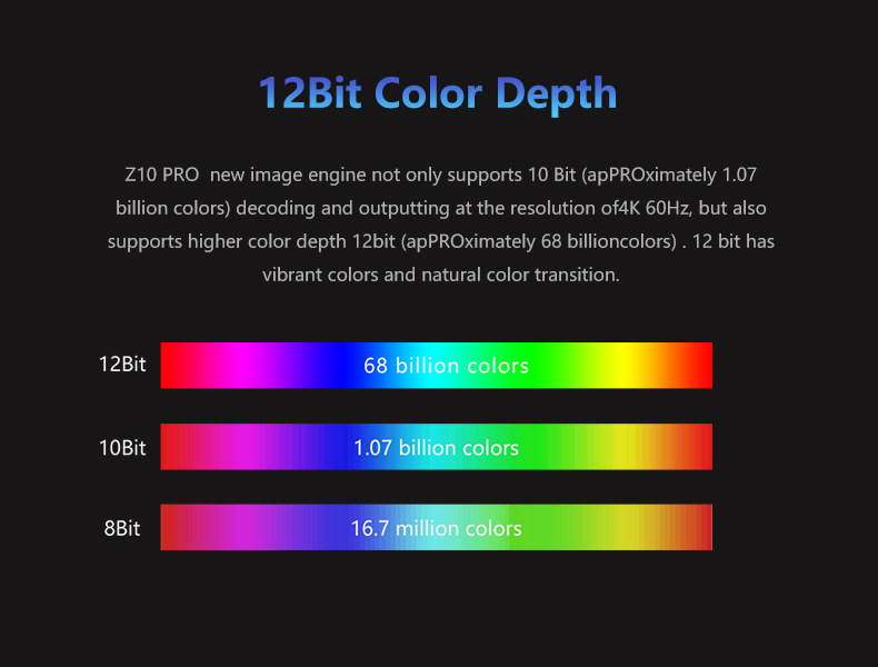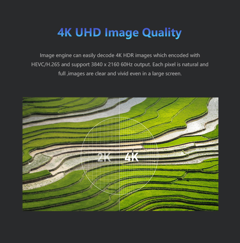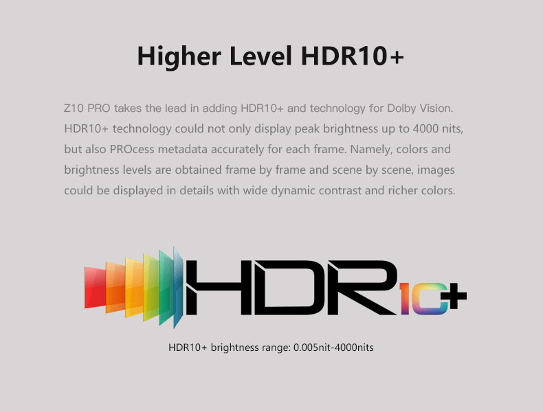 - Video decoding: 4K at 60fps, HEVC/H.265, 12 Bit, HDR10+, for Dobly vision