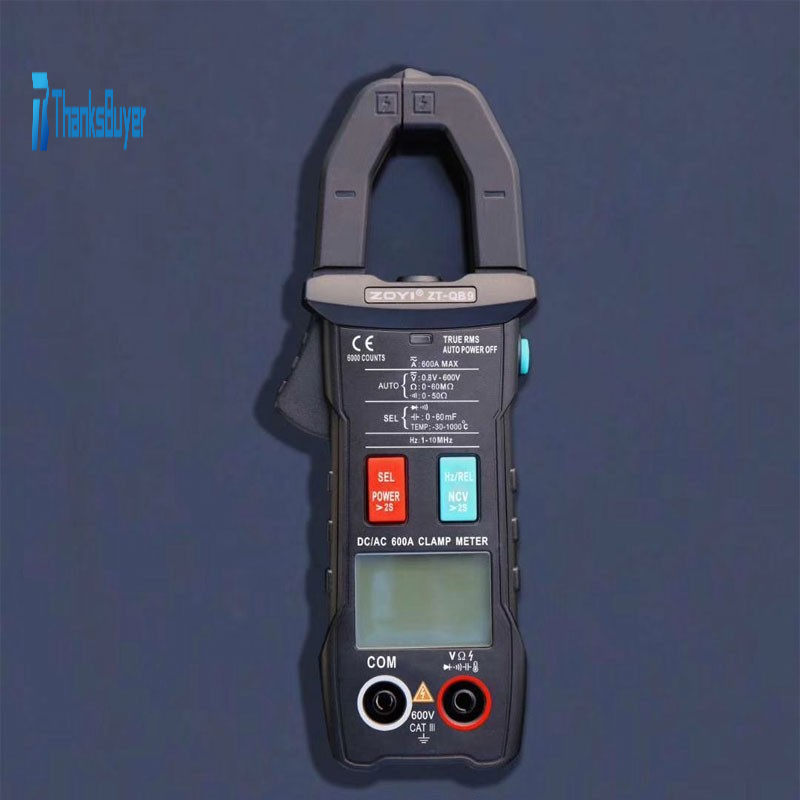 ZT-QB9 is a smart clamp meter with extremely simple panel, 600A AC/DC Current, Capacitance, Temperature, Inrush Current + Peak Hold voltage + Flashlight & Backlight. It is an ideal tool for electricians and maintenance. It enables CAT III 600V. Powerful functions include: