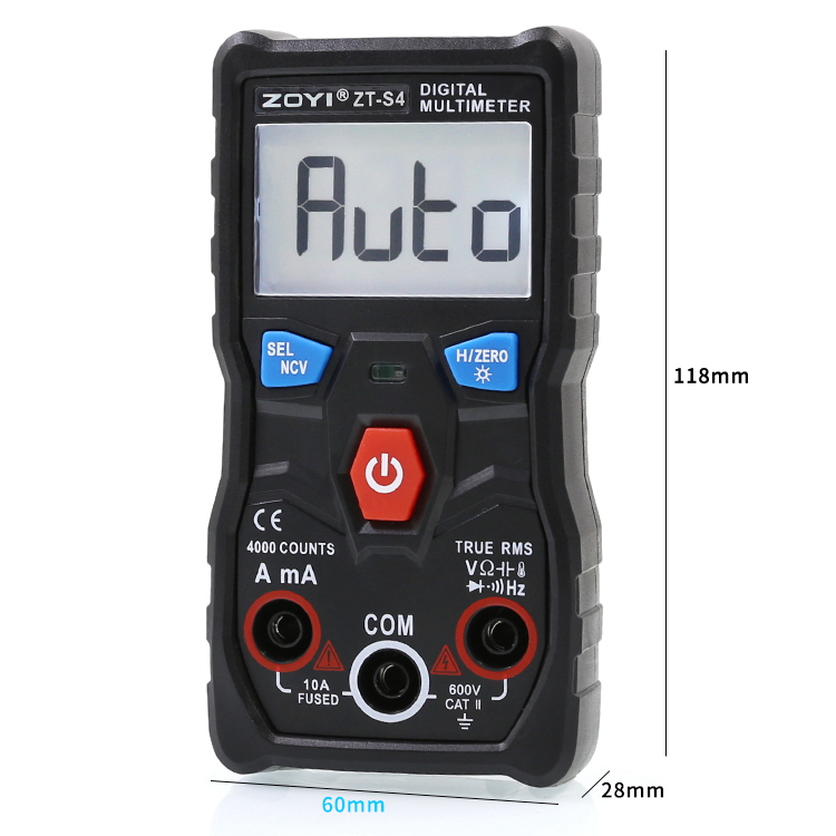 * ZT-S1: Test DC voltage, AC voltage, DC current, AC current, resistance, on-off buzzer, NCV, TRMS