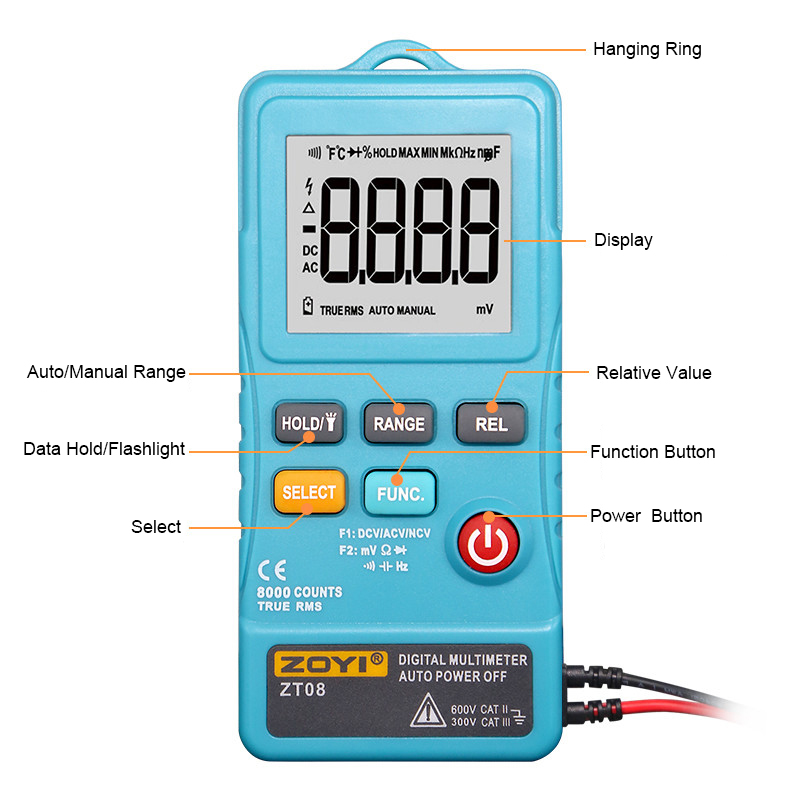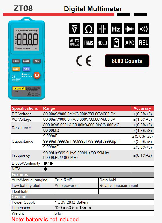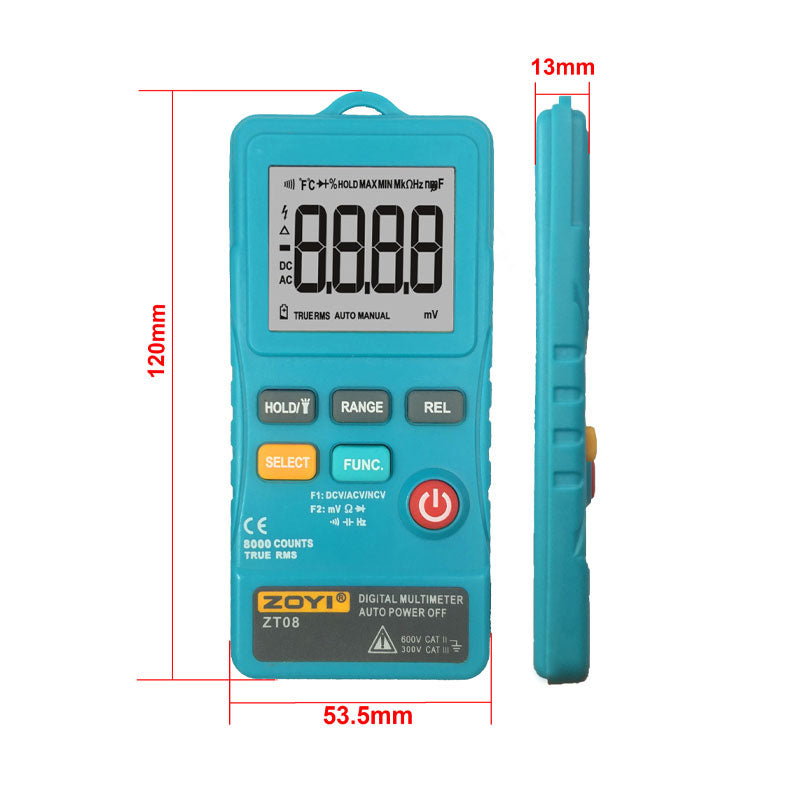 ZOYI ZT08 Ultra-Thin Digital Multimeter Tester 8000 Counts NCV AC DC Voltmeter Automatic Power off