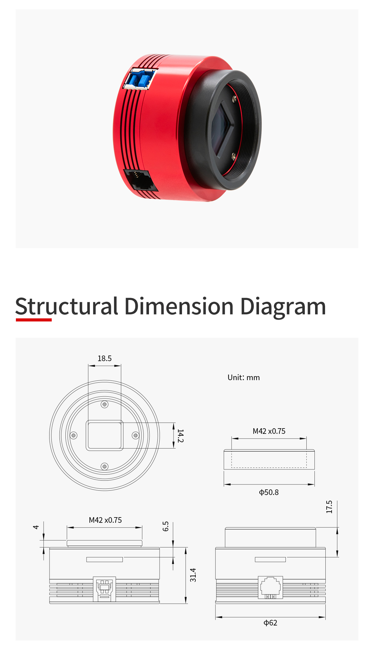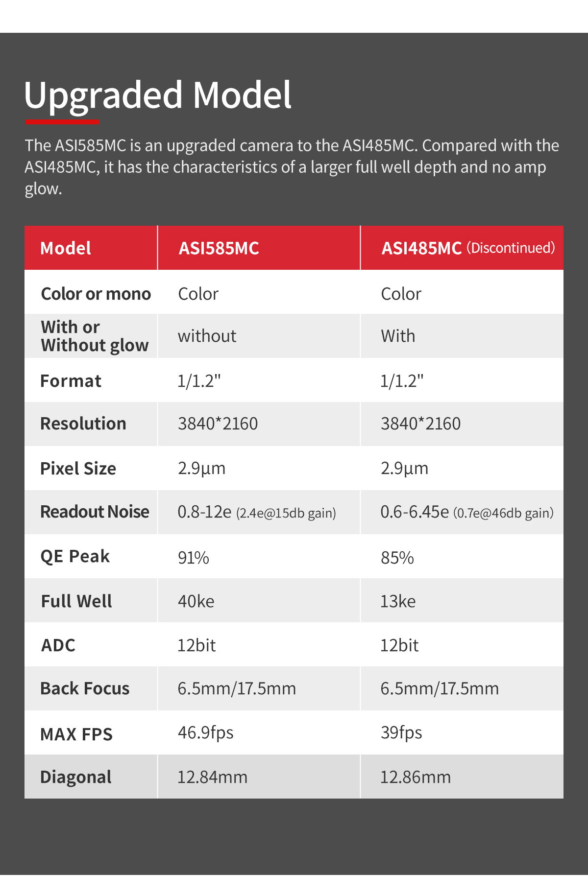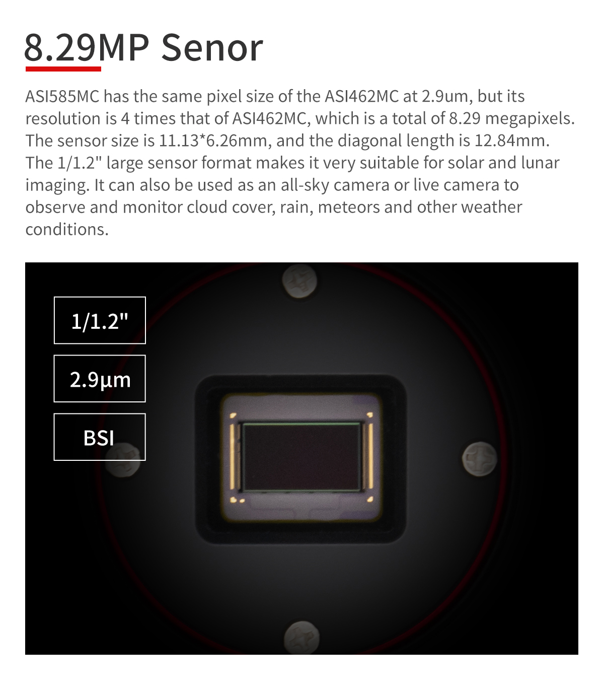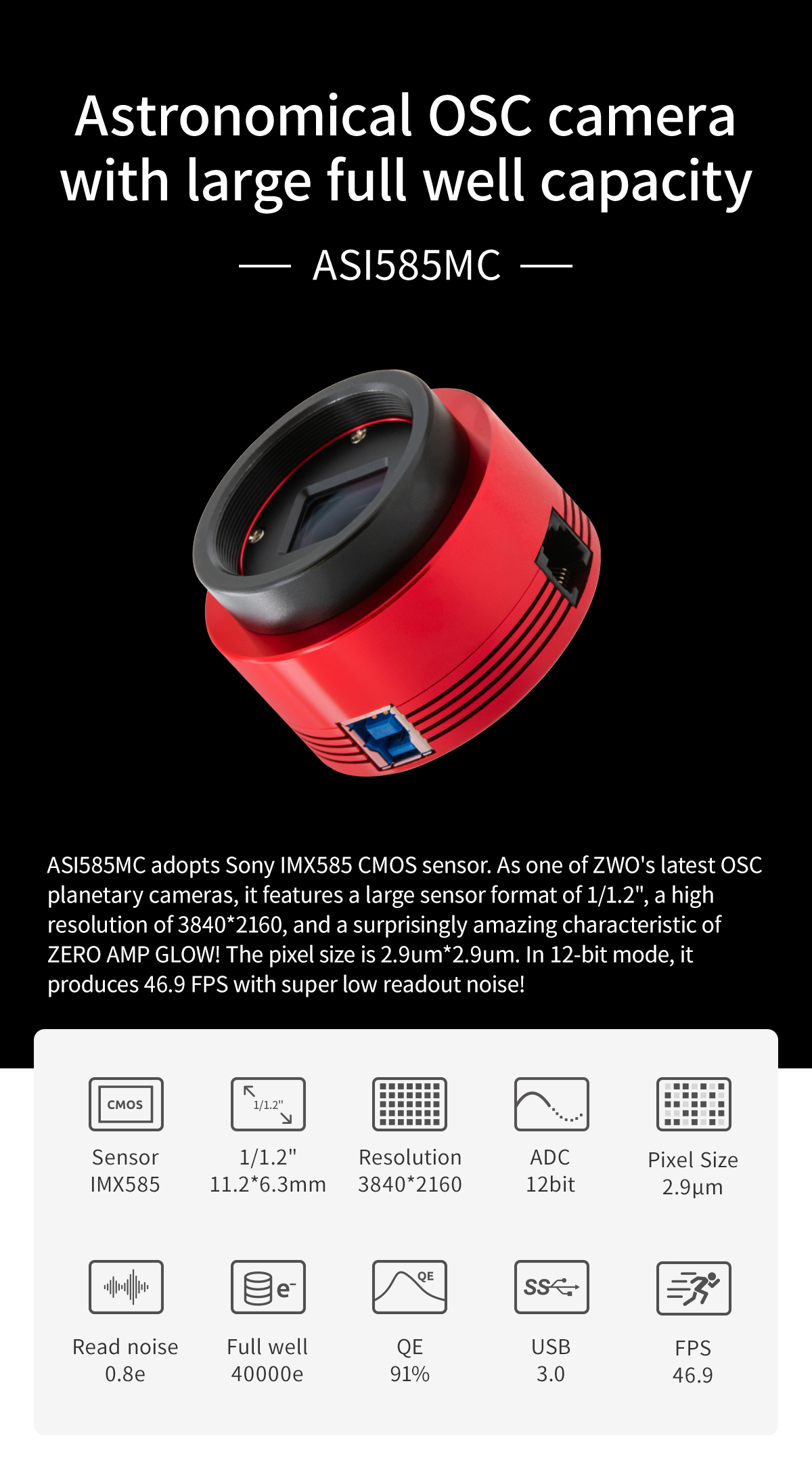 ZWO ASI585MC Color Astronomy Camera ASI Planetary Solar Lunar Imaging/Guiding High Speed USB3.0