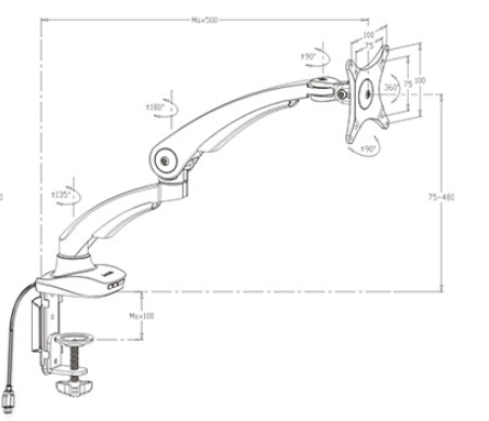 - Desktop support thickness: perforation mounting: 2-9cm;clamping mounting: 2-10cm