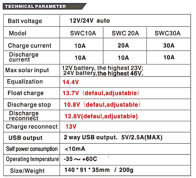 - 30A Max Solar Panel input 12V/450W 24V/900W