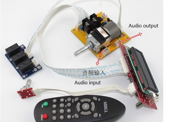 LCD Volume Dispaly Motor Potentiometer Remote Controller 2.0 Channel Pre-Amp Amplifier Board for Audio DIY