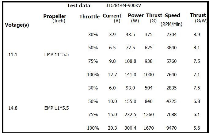 - Recommended voltage: 7.4V-14.8V (2S-4S)