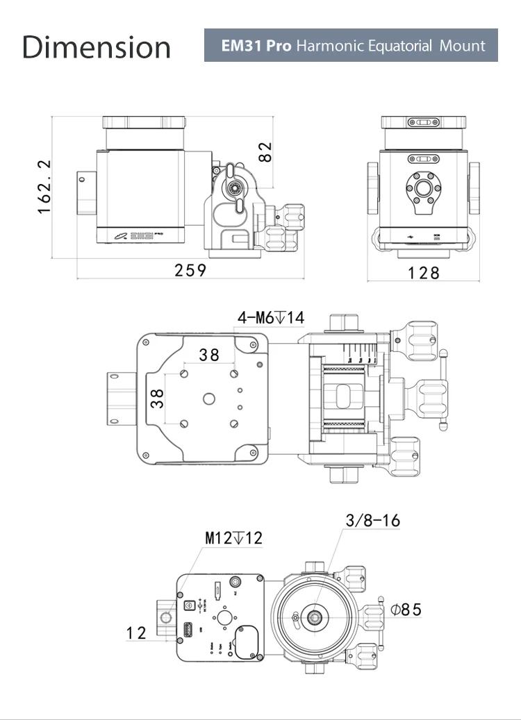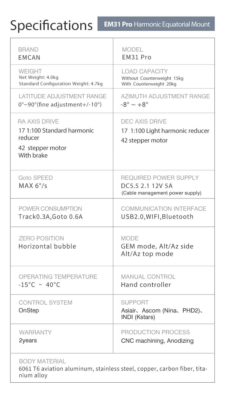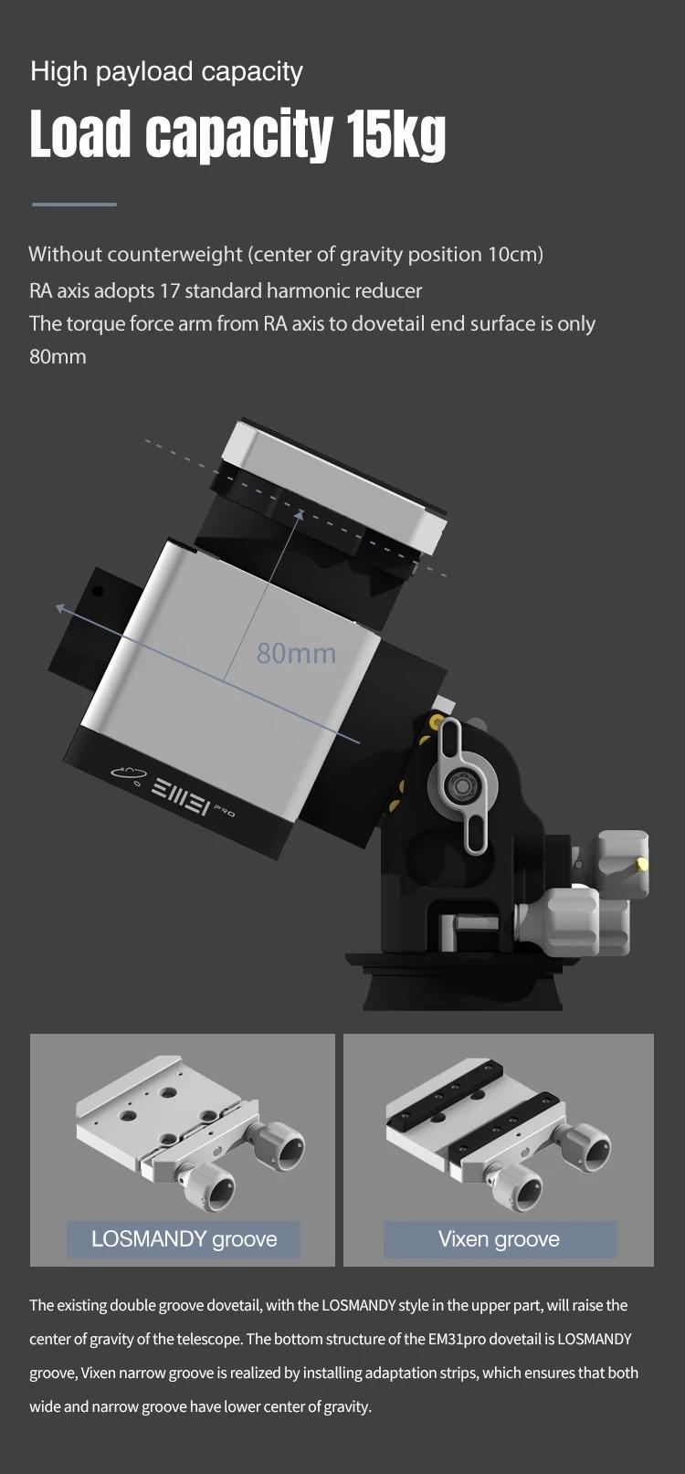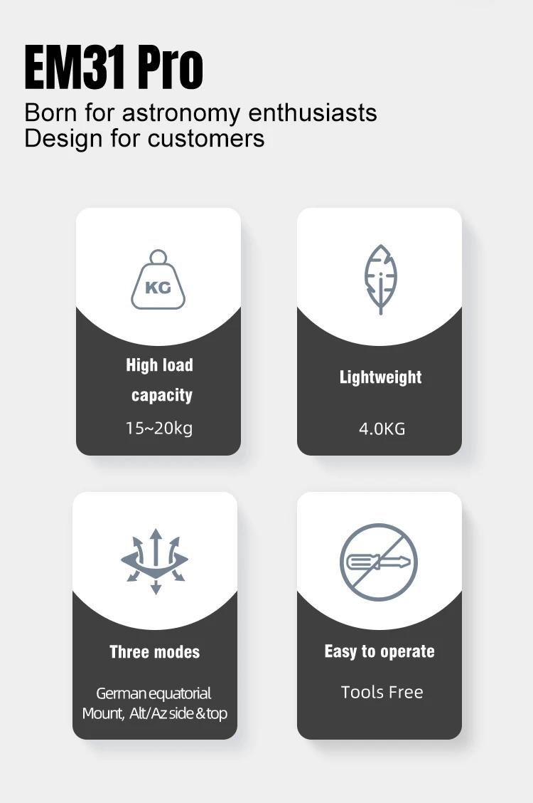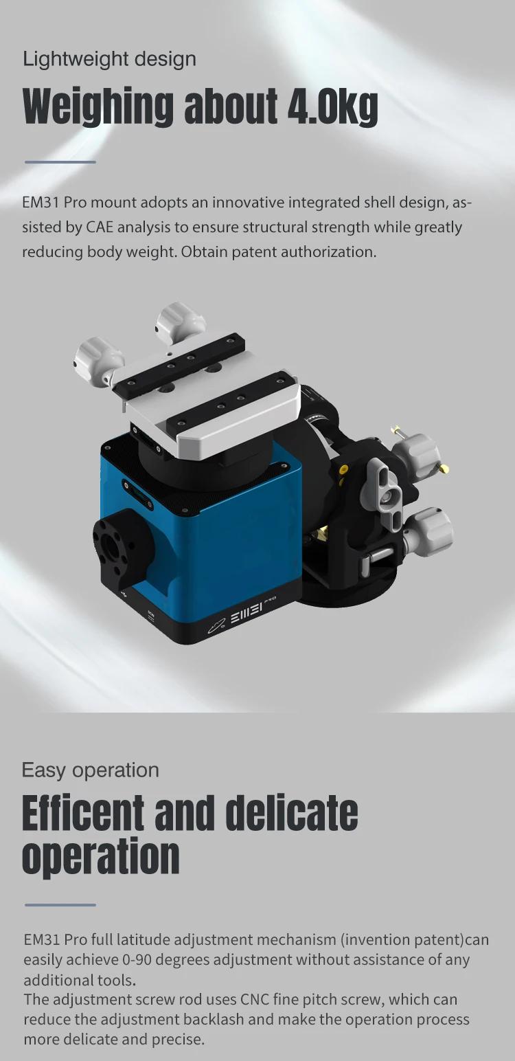Lightweight EM31Pro Harmonic Equatorial Mount High Load Capacity Multi-modes Theodolite Astronomical Accessory