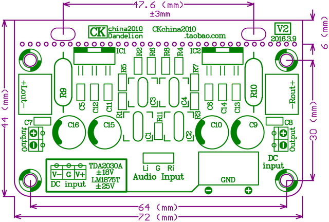 - Power voltage: -+8V ~-+30V (recommend -+25V, AC18V full bridge)