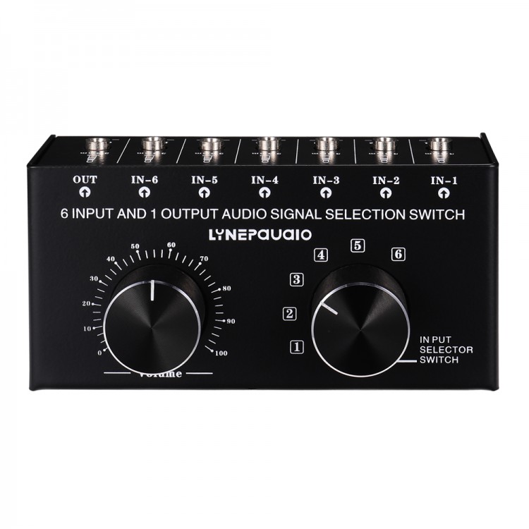 Lossless Audio Input Signal Selector Audio Input Switch 6 IN & 1 OUT Adjustable Output Volume 3.5mm Ports