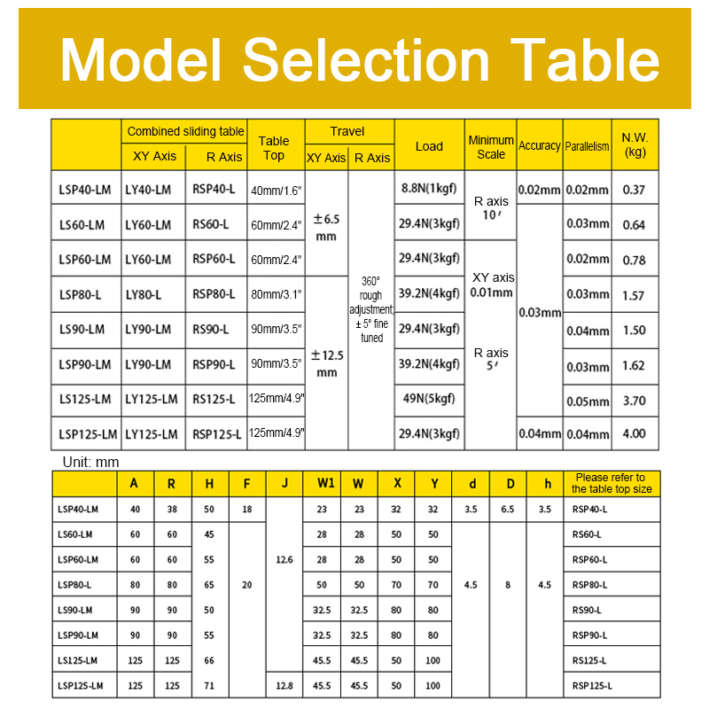 LSP80-L 80x80MM/3.1x3.1" XYR Axis Sliding Stage Fine-Tuned Sliding Table of High Precision