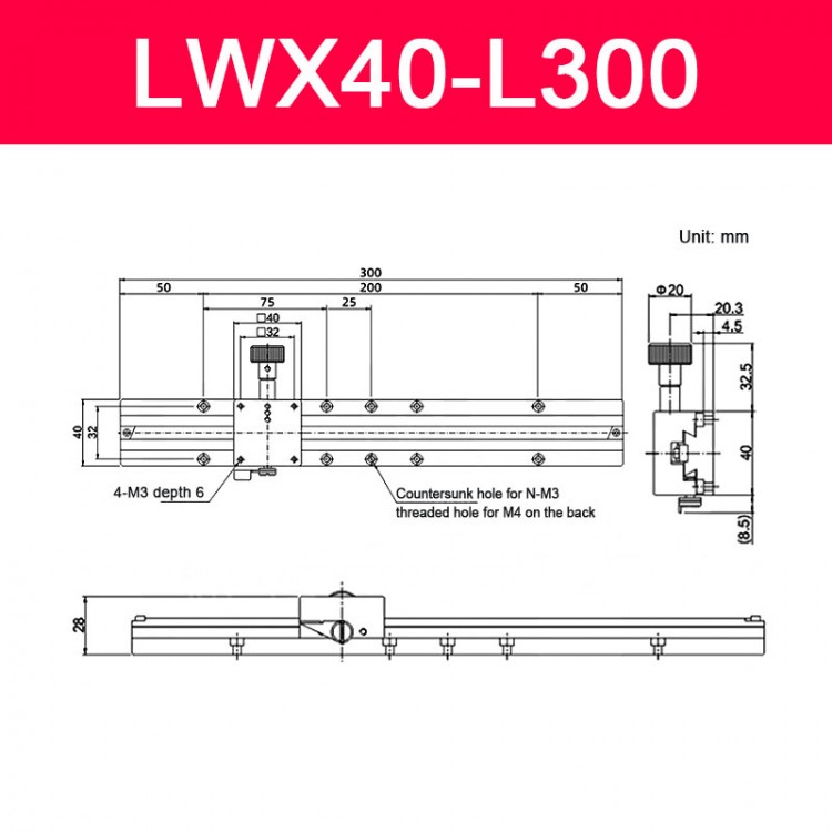 LWX40-L300 X-Axis Sliding Table Precision Manual Sliding Table with Dovetail Groove 260MM/10.2" Travel