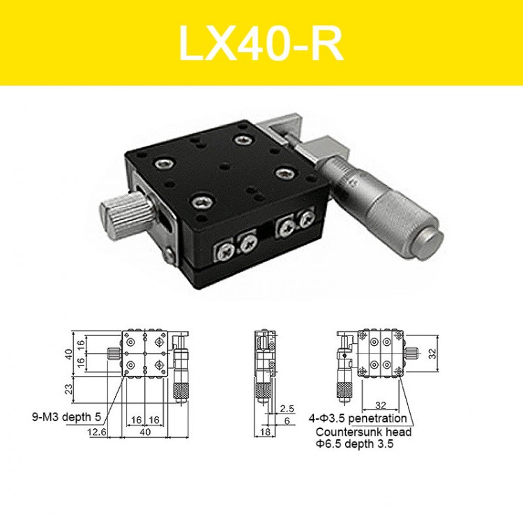 LX40-R Travel ±0.3" 29.4N X-Axis Sliding Stage Fine-Tuning Sliding Table w/ Right Handed Micrometer