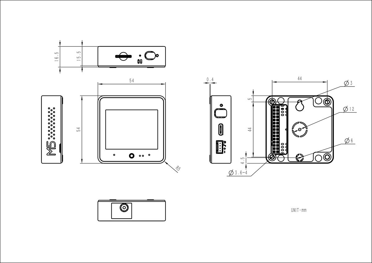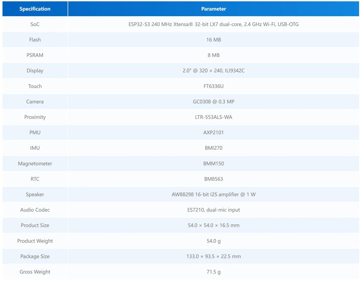 - AXP2101 power management + BM8563RTC, supports low-power timed wake-up, extends battery life. Equipped with a built-in 200mAh lithium battery and a magnetic back-plate design, it can be flexibly installed in smart homes, robots, and other scenarios.