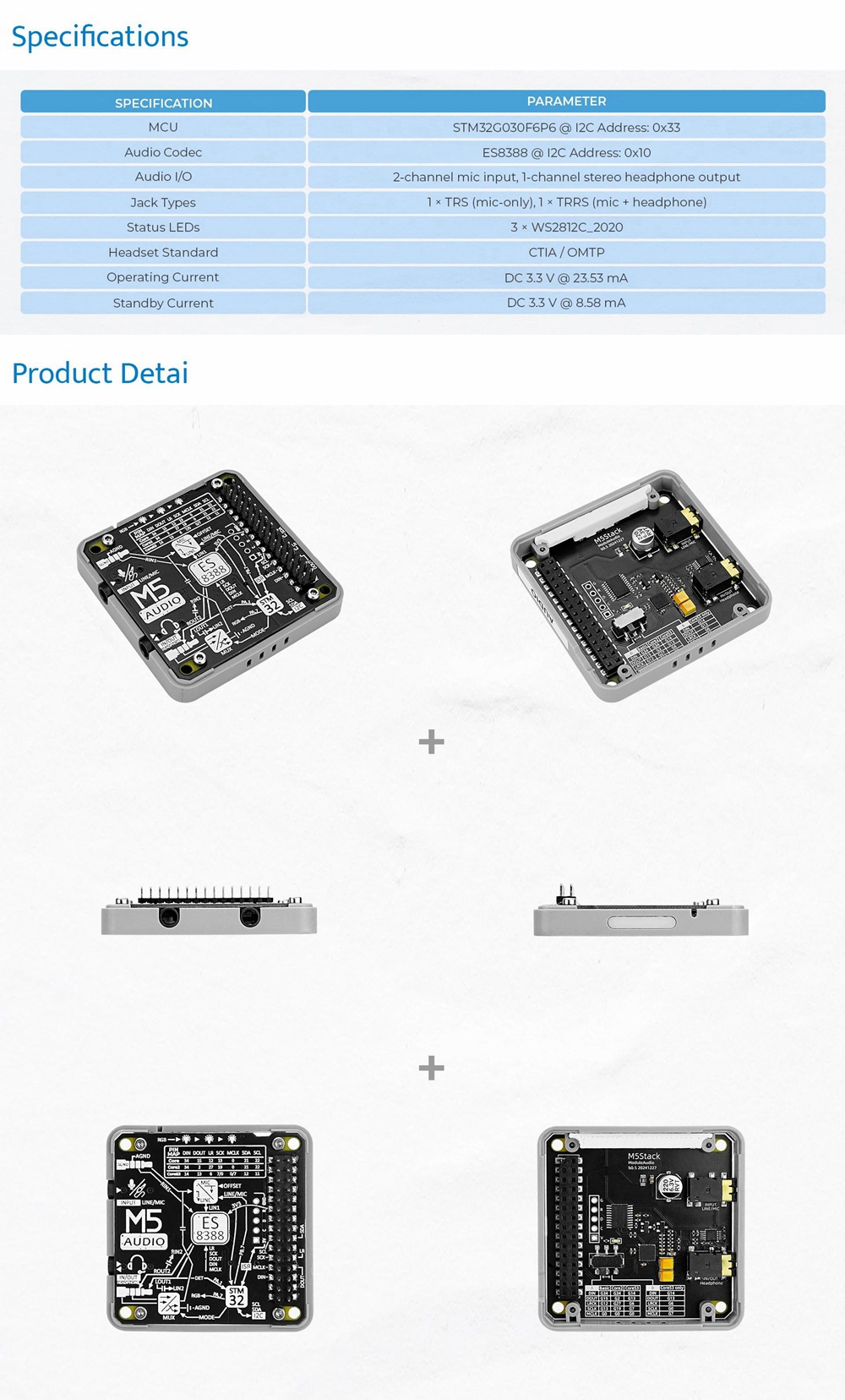 M5Stack Module Audio ES8388 Audio Interaction Expansion module HiFi Audio Codec Support 2-Channel Microphone Input