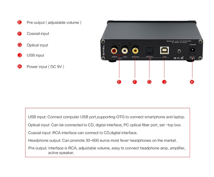 M6 XMOS DSD USB DAC Amplifier AK4452 Decoder Native DSD512 32Bit/ 768KHz USB Optical Coaxial Input