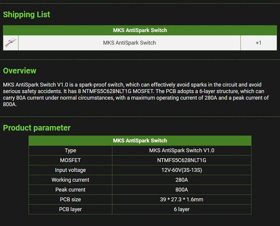 Makerbase MKS AntiSpark Switch V1.0 280A High Voltage and Current Anti Spark Switch Compatible with VESC