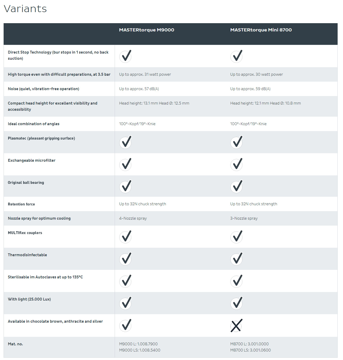 Thanks to their impressive performance, lower weight and particularly high-quality features, MASTERtorque and * MASTERtorque Mini turbines are a real alternative to dental high-speed instruments.