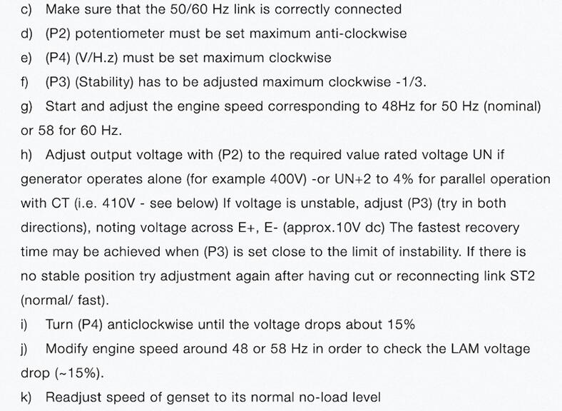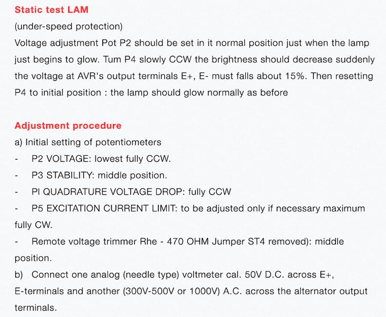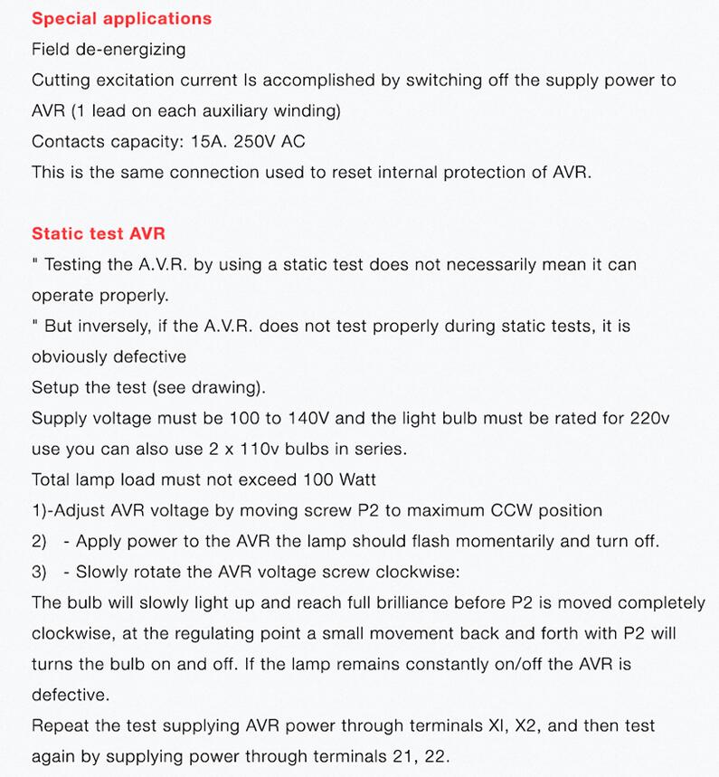 Voltage build-up: residual voltage at AVR terminal ≥5VDC