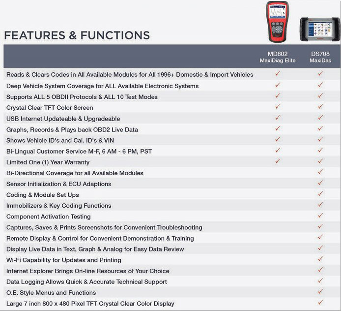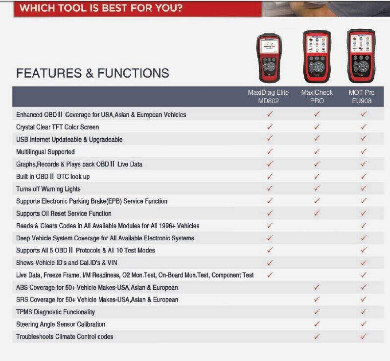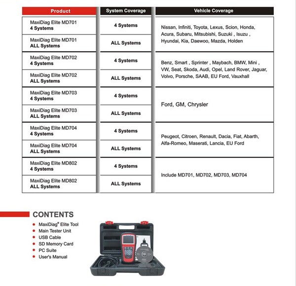 1. MaxiDiag Elite MD802 Vehicle Coverage: Including MD701, MD702, MD703 and MD704, Support European, Asian and USA Car Models from 1996 Year.
