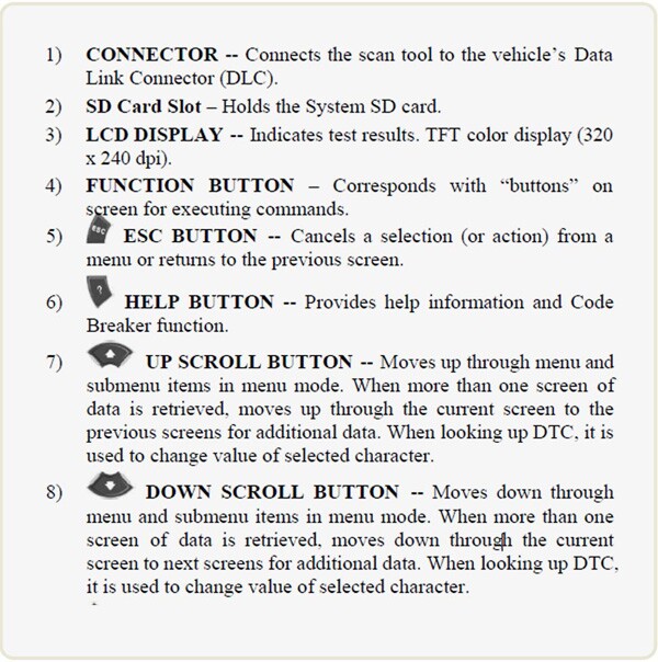 - Supports all 10 test modes of the latest J1979 OBD II test specs,including Read Codes, Erase Codes, Live Data, Freeze Frame,I/M Readiness, O2 Mon.Test, On-Board - Mon.Test, Component Test and Vehicle Information