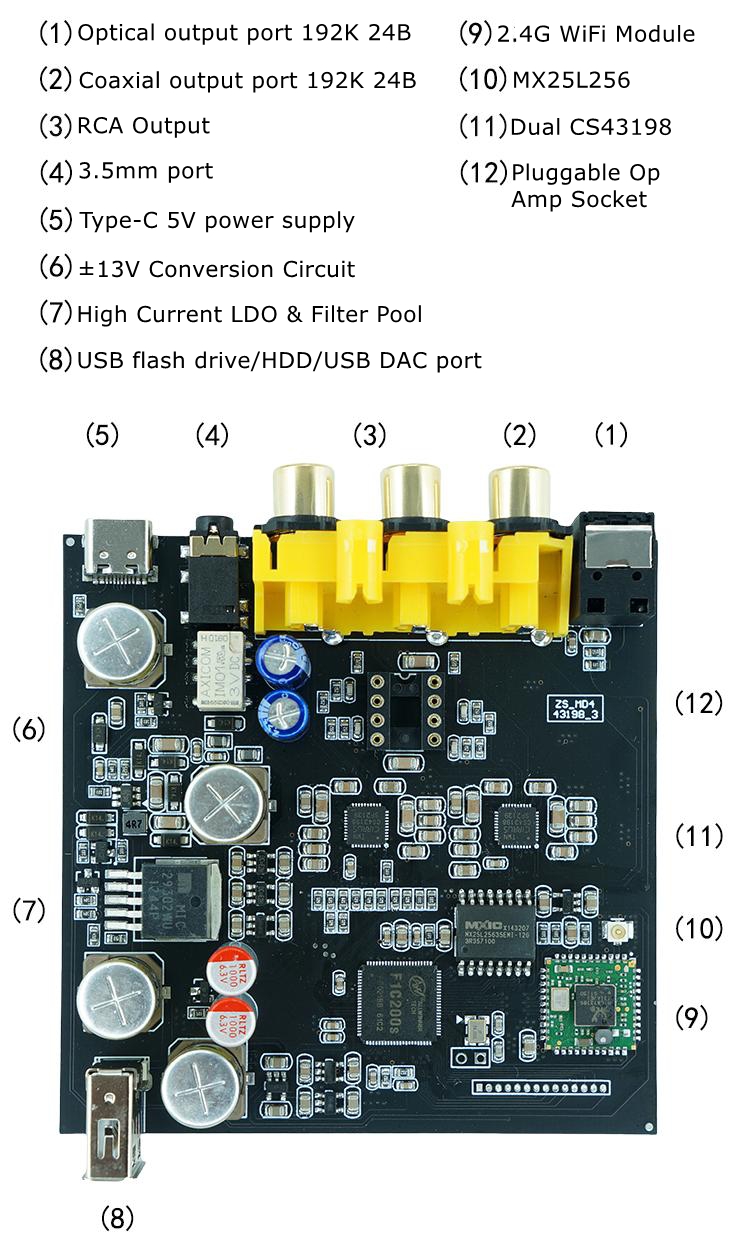 MD4 Dual CS43198 (JRC2068) Vehicle-mounted Lossless Music Decoder HiFi Bluetooth LDAC Player Support EQ Setting