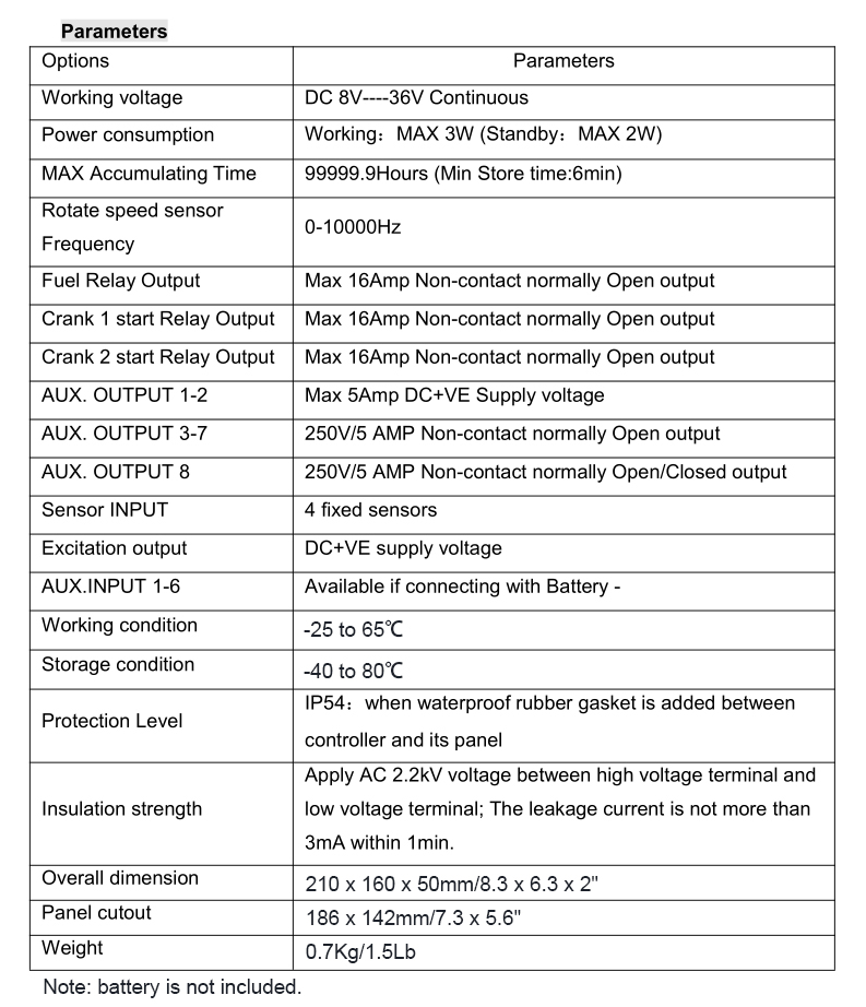 - Battery charging control function,which can protect the battery according to battery voltage status