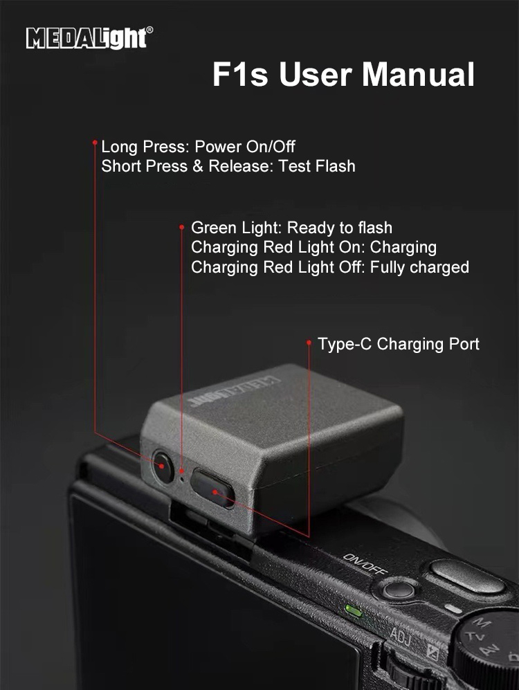 MEDALight F1s Gray Ultra-Mini Flash External Flash with Universal Hot Shoe for Most Digital Cameras