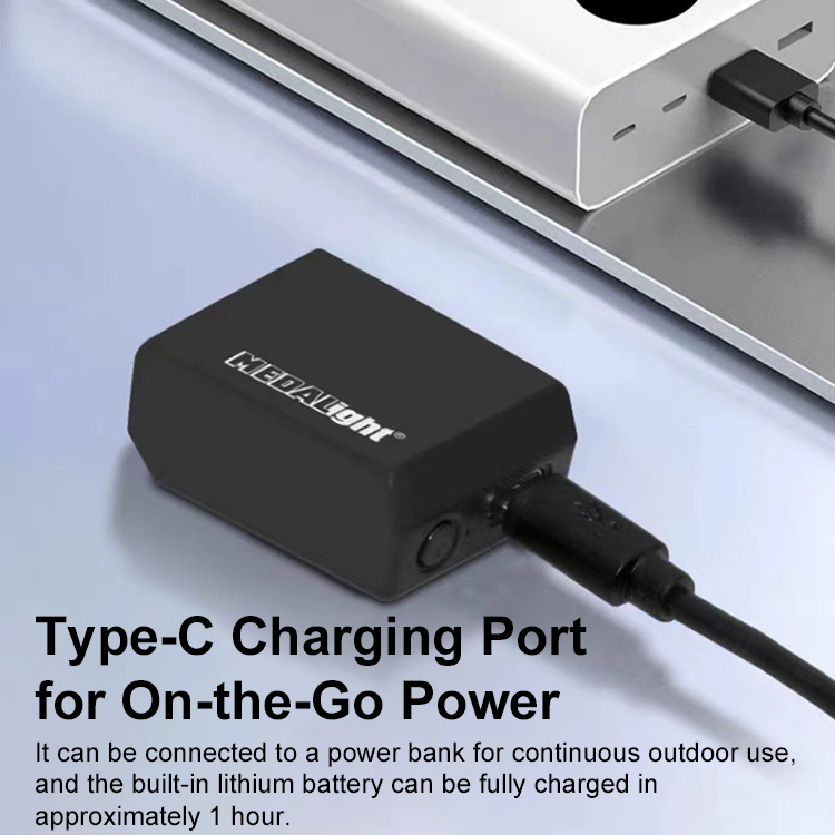 * It can be connected to a power bank for continuous outdoor use, and the built-in lithium battery can be fully charged in approximately 1 hour.