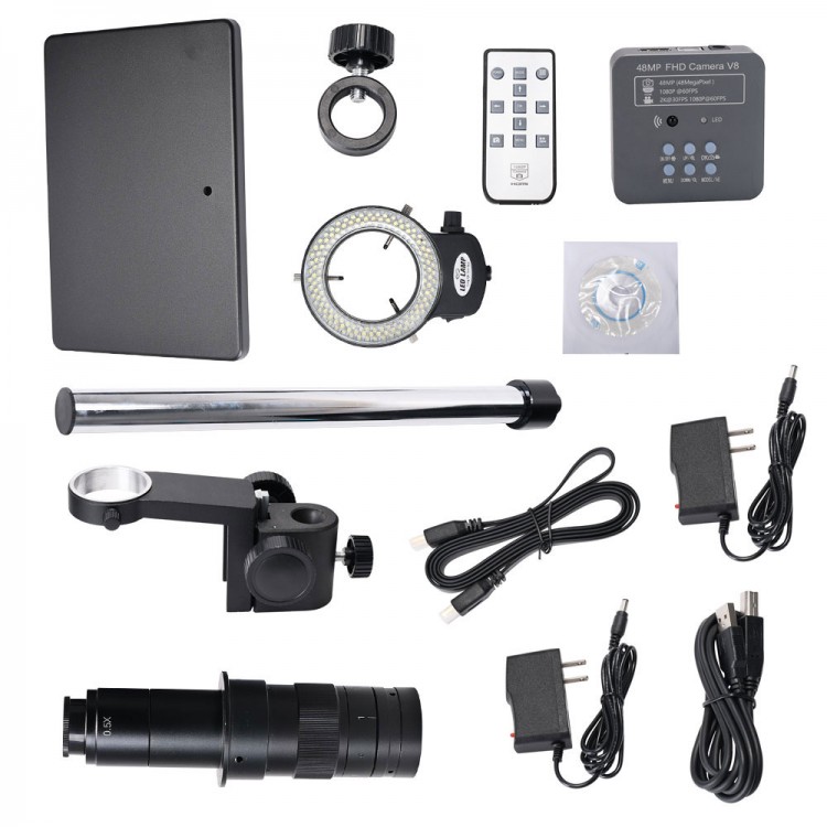 Microscope Camera Kit 48MP FHD Camera V8 HDMI USB Output 180X Lens 144-LED Light For PCB Repair