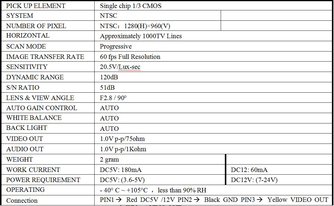 These cameras come with high sensitive CMOS sensor, which has excellent video function and very low illumination. They are of high stability and ultra long working life. Their sizes are as small as coin. Weight is 2g only. It’s very suitable for hidden surveillance.