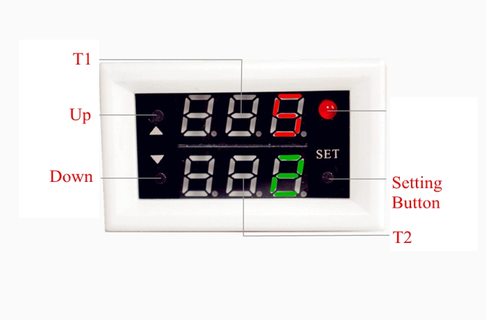 - Double LED Display: can set two sets timing time. Timing time T1, timing time T2