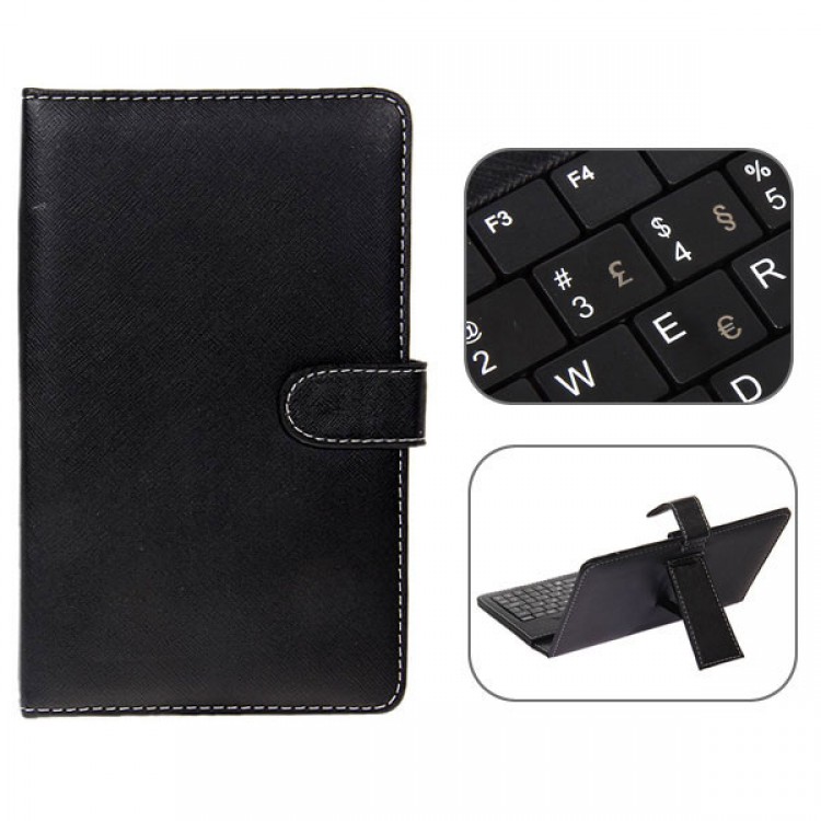 Mini USB Portuguese Keyboard Leather Case with Stylus for 7 inch Tablet PC-Portuguese