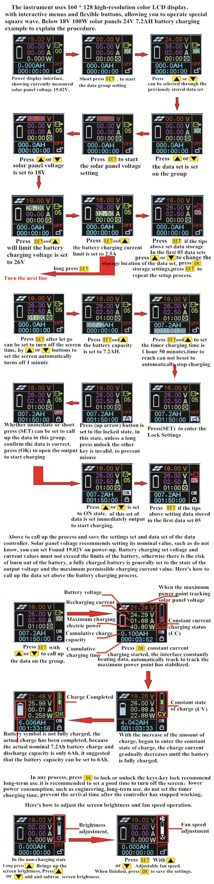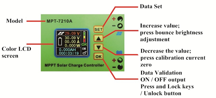 -The controller uses advanced software active algorithm for quickly and accurately tracking the maximum power point of photovoltaic panels module voltage, active tracking work at the maximum power point of the solar cell module in order to get more solar energy. Enhance the charging current and power generation.