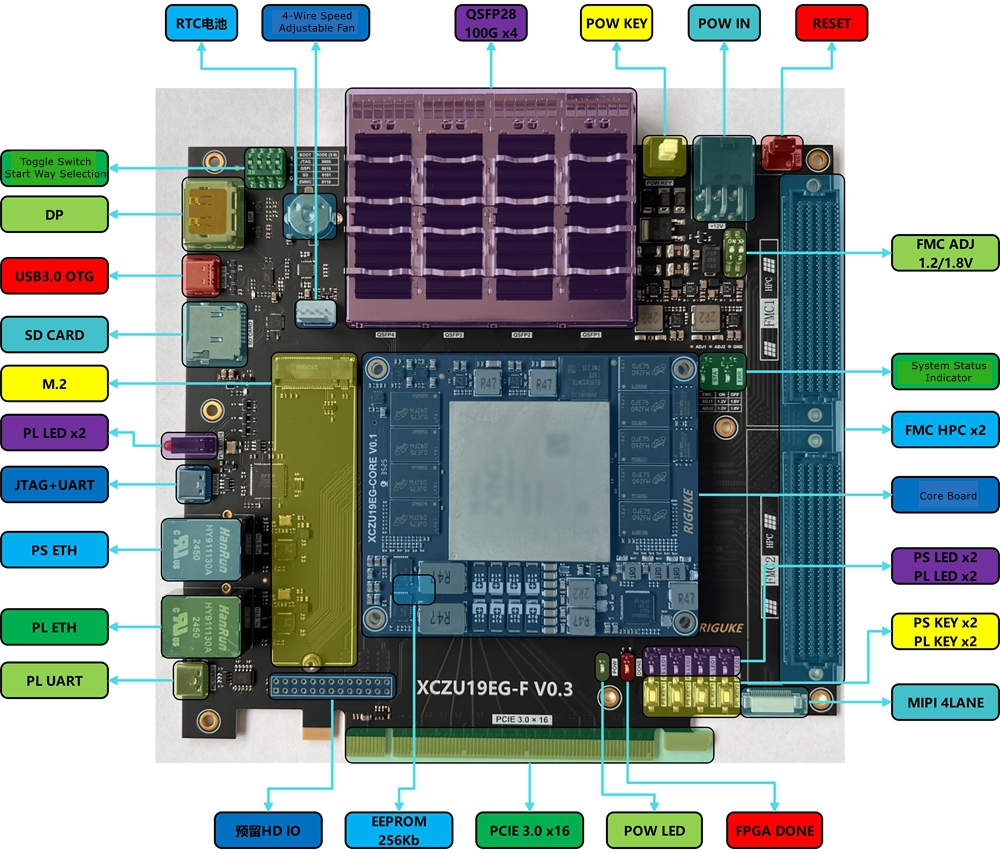 MPSoC XCZU19EG-F V0.3 AMR+FPGA Development Board Kit QSFP28 10Gbps Ethernet PCIE3.0 Support for Windows/Linux Systems