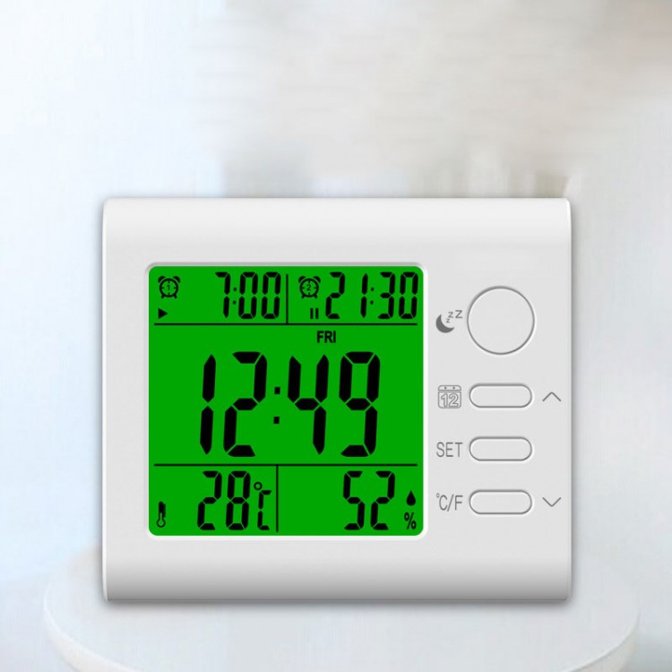 - Basic function:temperature/humidity display;℃/℉ temperature switching display;24h format;2 clocks;calendar diplay