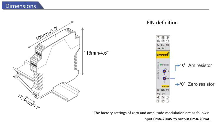 MV-20B 0-20MA ±10V Precise Strain Gauge Amplifier Industrial-grade Precise Isolated Bridge Amplifier