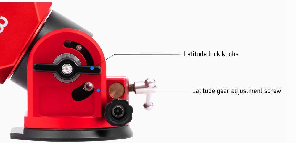 - Gear 2: You can loosen the hex-head screw and then adjust the latitude adjustment knob to achieve a degree between 30 and 90.