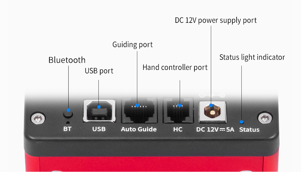 *Note: The recommended operating voltage for the ZWO Harmonic Equatorial Mount is 12V. When the actual input voltage is below 10.8V, the mount will emit a beeping alarm to indicate under-voltage condition. To ensure proper functioning of the equipment, we recommend using the official ZWO power adapter and an appropriately sized power cable.