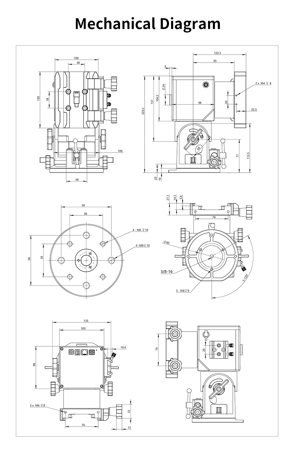 2. Supported counterweight:≤5kg. Maximum load capacity with the counterweight: 13kg.