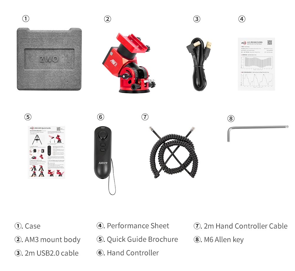 - ASIAIR can control AM3 via a wired or wireless connection. The ASI package gives customers the best astrophotography experience.