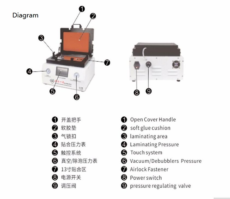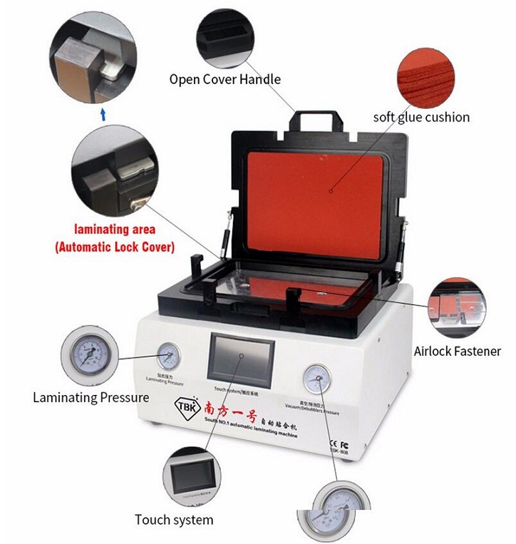 - This is laminating remove bubble with automatic lock gas,no need connect air compressor and vacuum pump,automatic evacuate,laminating and remove bubble,automatic lock door can do one time,cand o 100% no bubble.