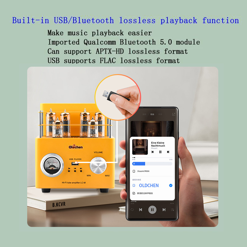 - The built-in Bluetooth5.0 module supports for APTX-HD lossless format; USB supports FLAC lossless format.
